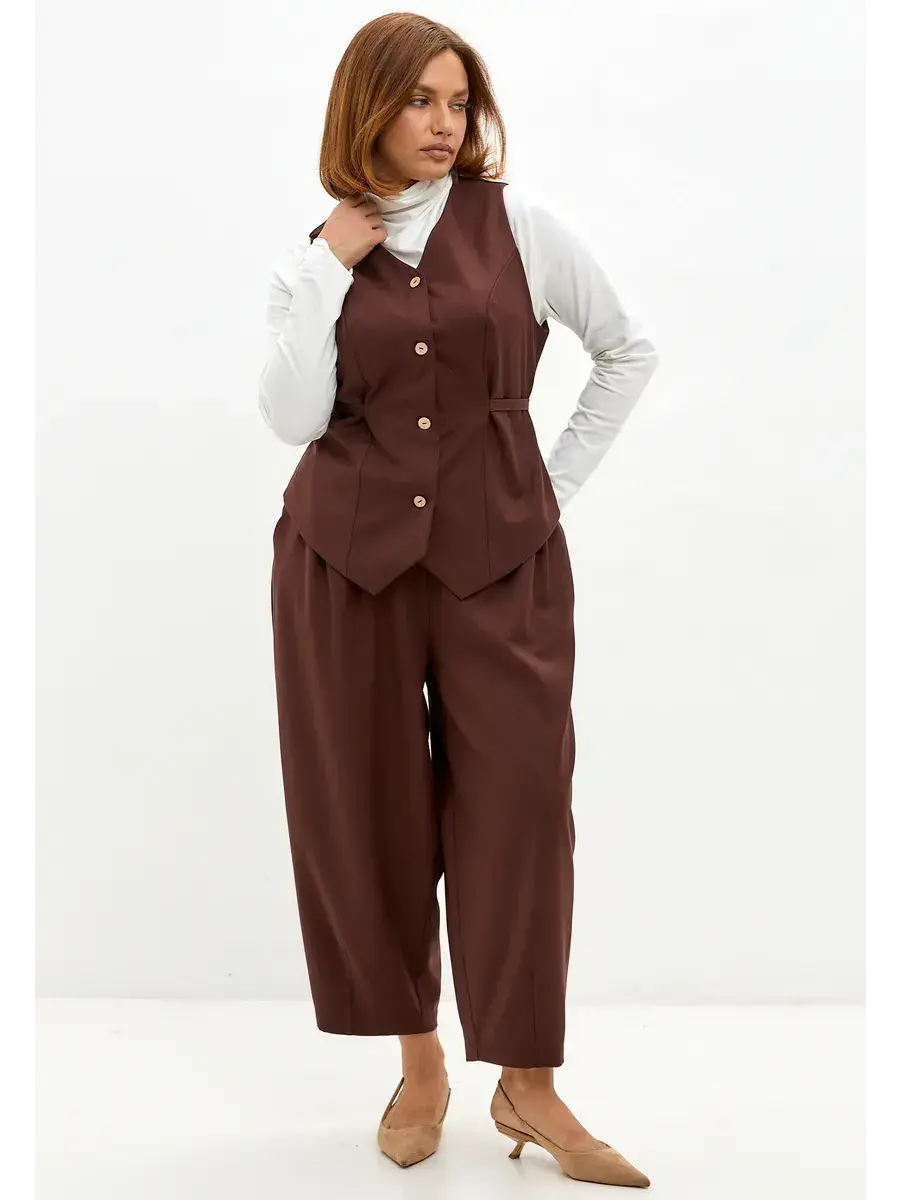 Брюки-бананы из премиальной костюмной ткани станут ярким акцентом вашего образа. Мягкое полотно (65% полиэстер, 32% вискоза, 3% спандекс) обладает приятной на ощупь фактурой, красиво драпируется и не теряет форму.