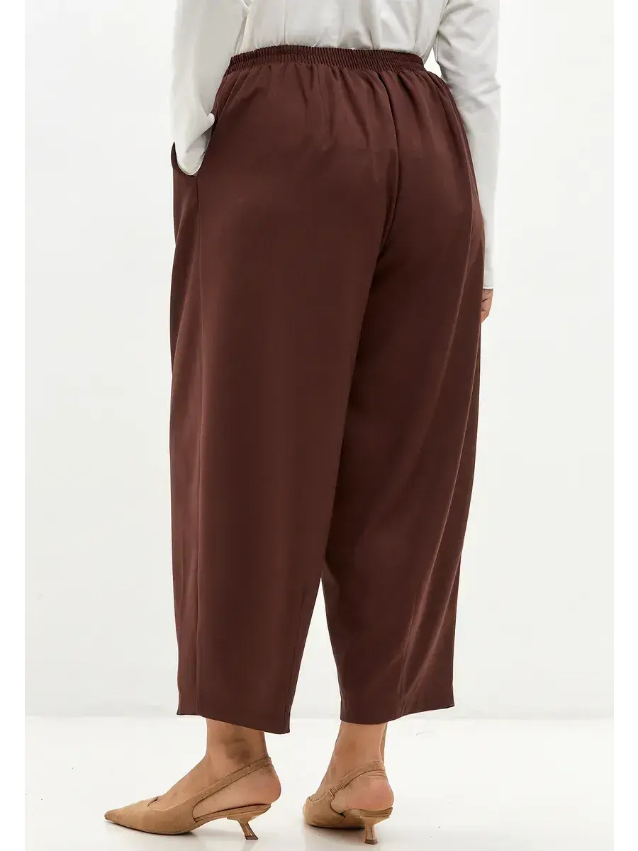 Боковые прорезные карманы аккуратно интегрированы в швы, добавляя изделию функциональности и сохраняя чистоту линии кроя. Длина до щиколотки делает брюки универсальными — их легко сочетать как с обувью на каблуке, так и с плоским ходом.