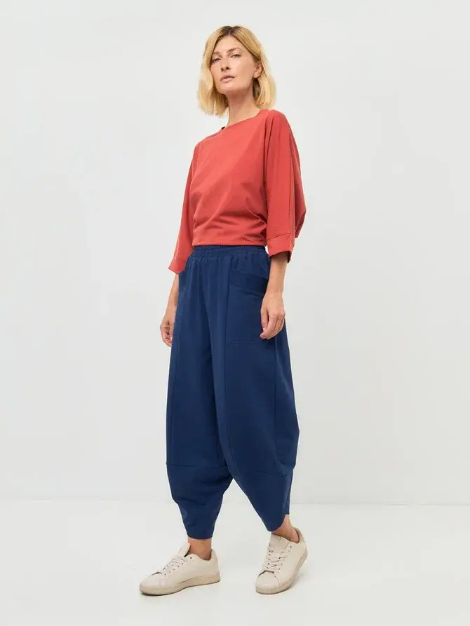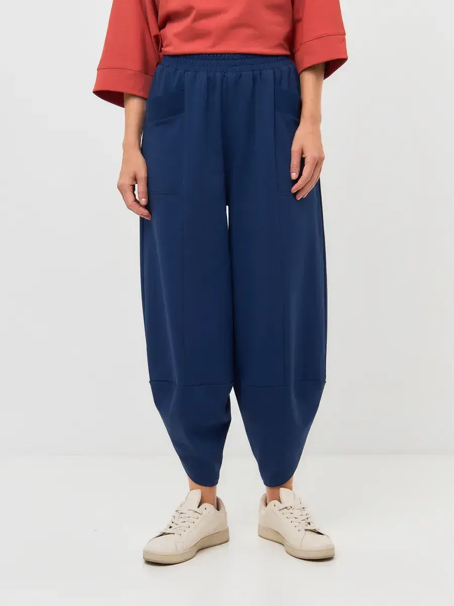 Брюки бананы трикотажные индиго