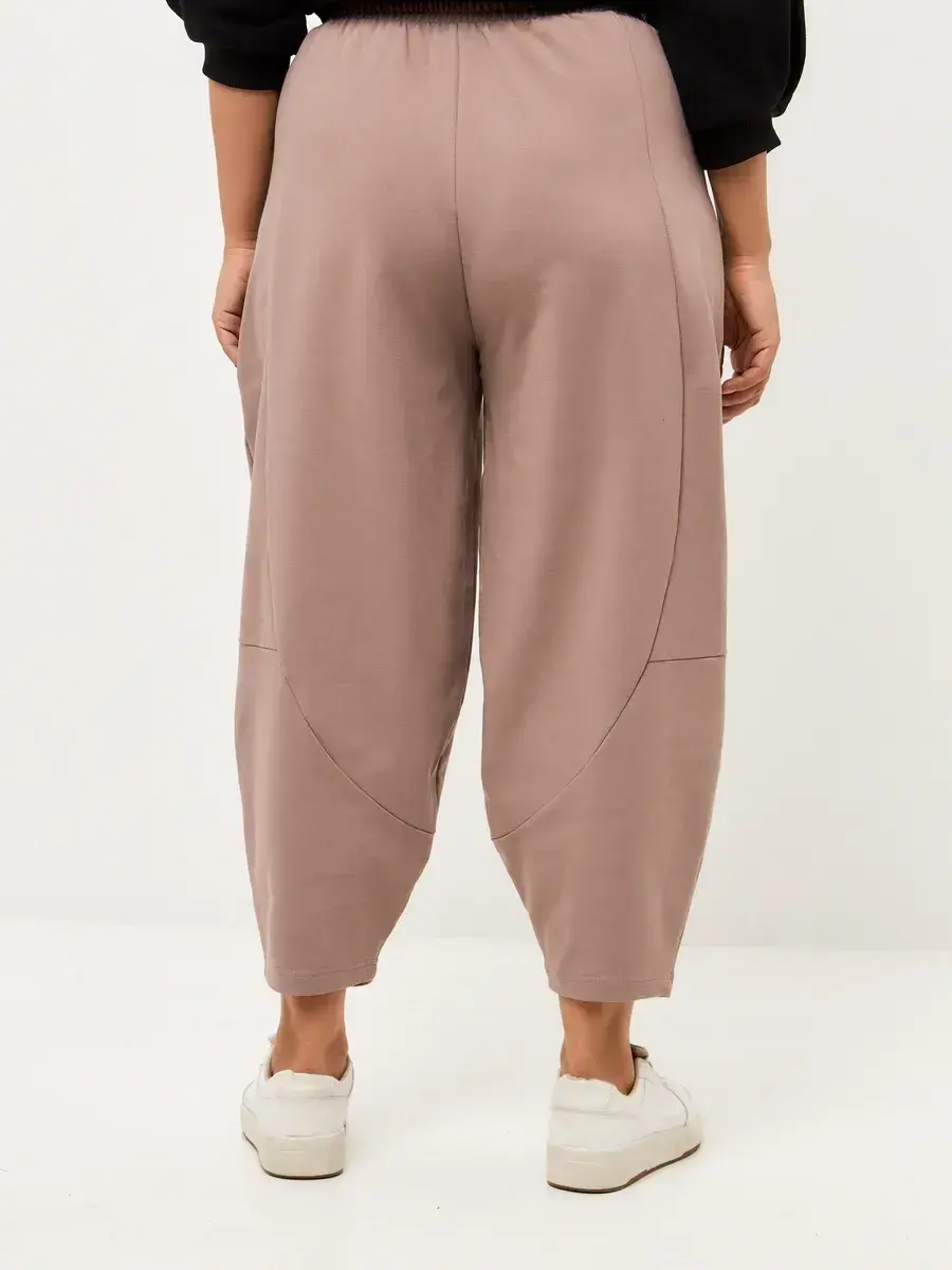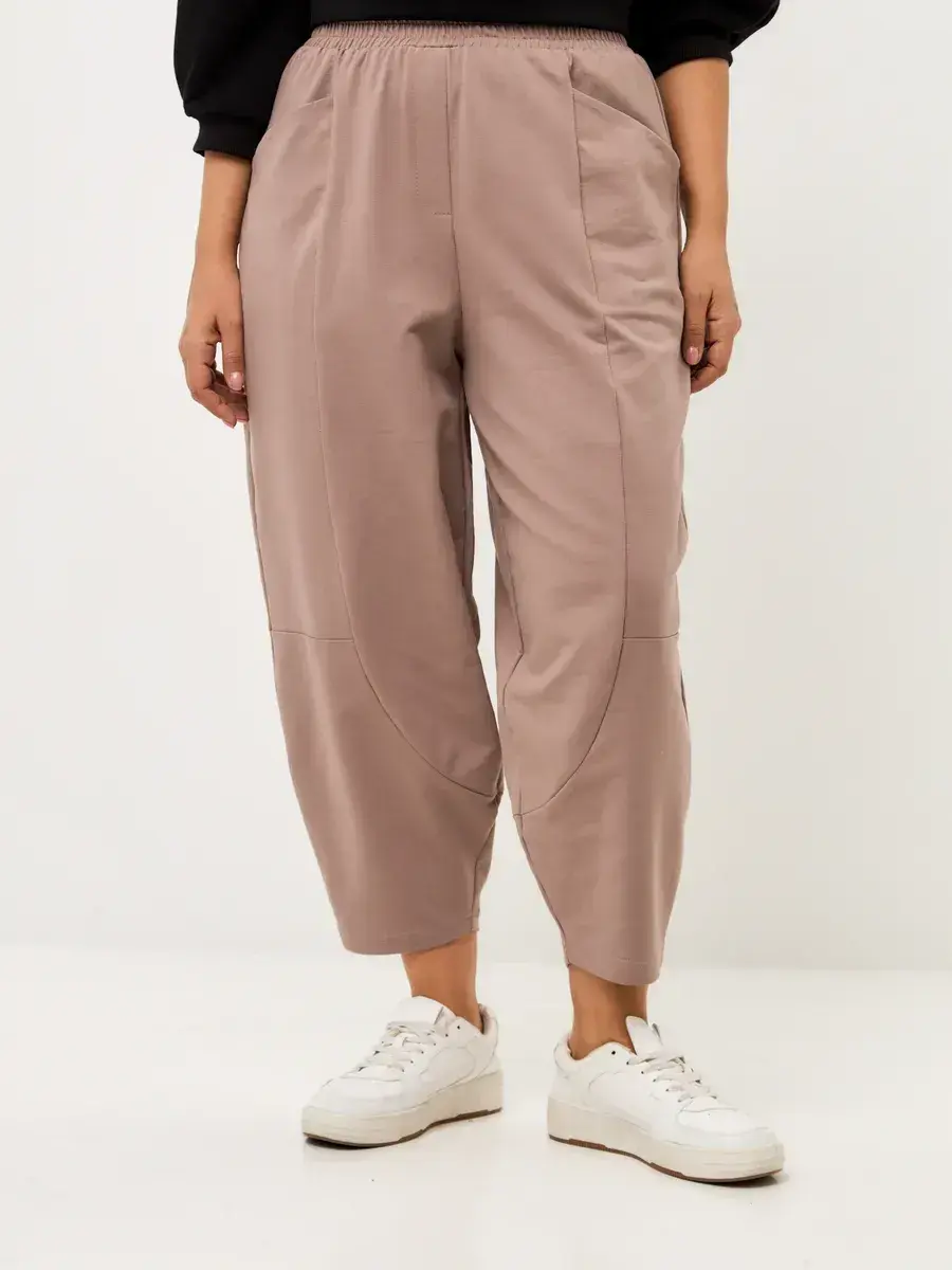 Брюки бананы трикотажные с декоративными швами пудровый