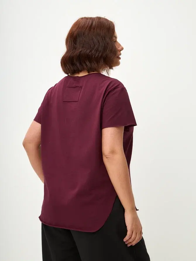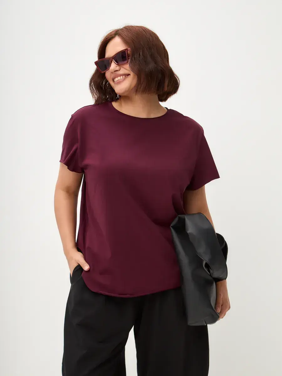 Футболка выполнена из мягкой и прочной кулирной глади премиального качества (95% хлопок, 5% эластан), которая приятно ощущается на коже и сохраняет форму после стирок. Свободный крой в стиле оверсайз обеспечивает комфорт и лёгкость движений, а скруглённый низ с удлинённой спинкой визуально вытягивает силуэт. Рукав цельнокроеный, с лёгким расширением — мягко драпируется и гармонично смотрится на любой фигуре. Горловина обработана аккуратным кантом, что добавляет изделию аккуратности и долговечности. Минималистичный дизайн делает футболку универсальной — её легко сочетать и с джинсами, и с классическими брюками.
