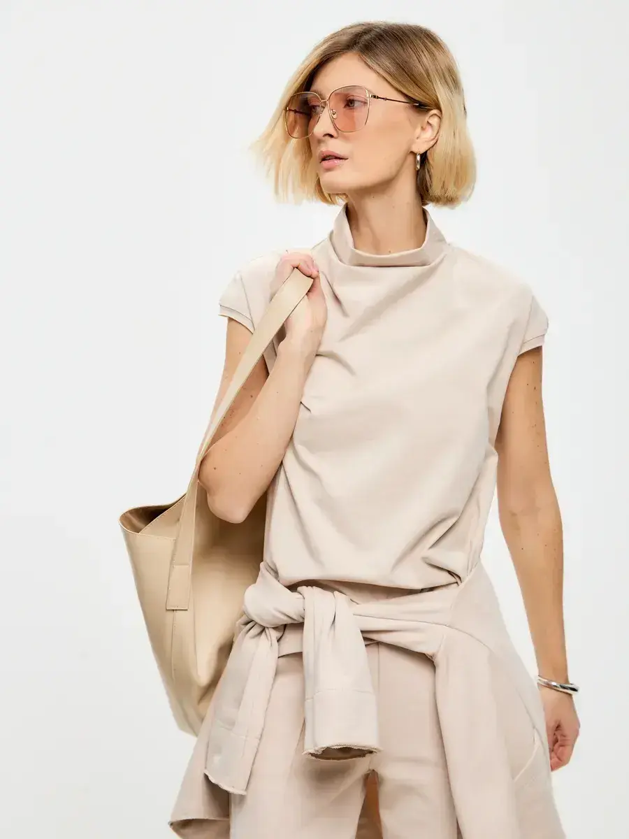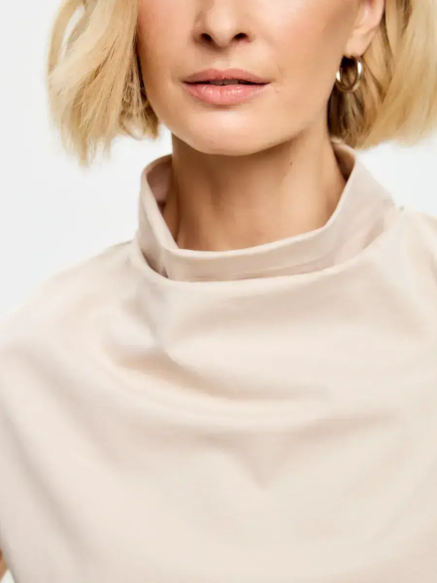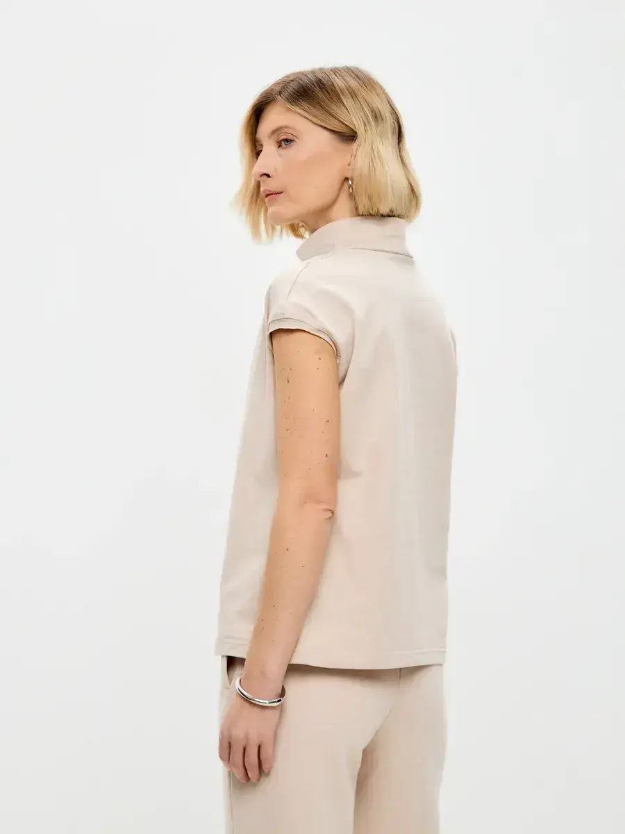 Футболка дизайнерская с цельнокроеным воротником бежевый
