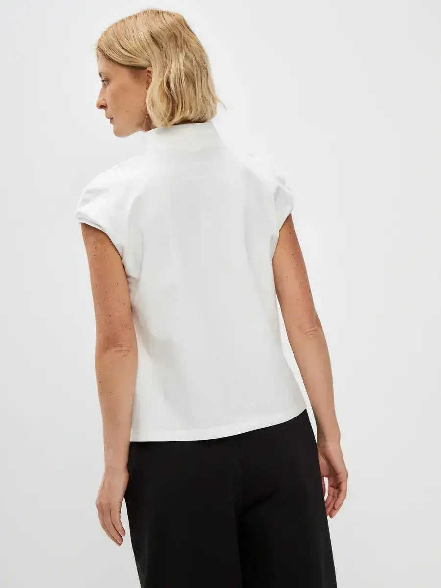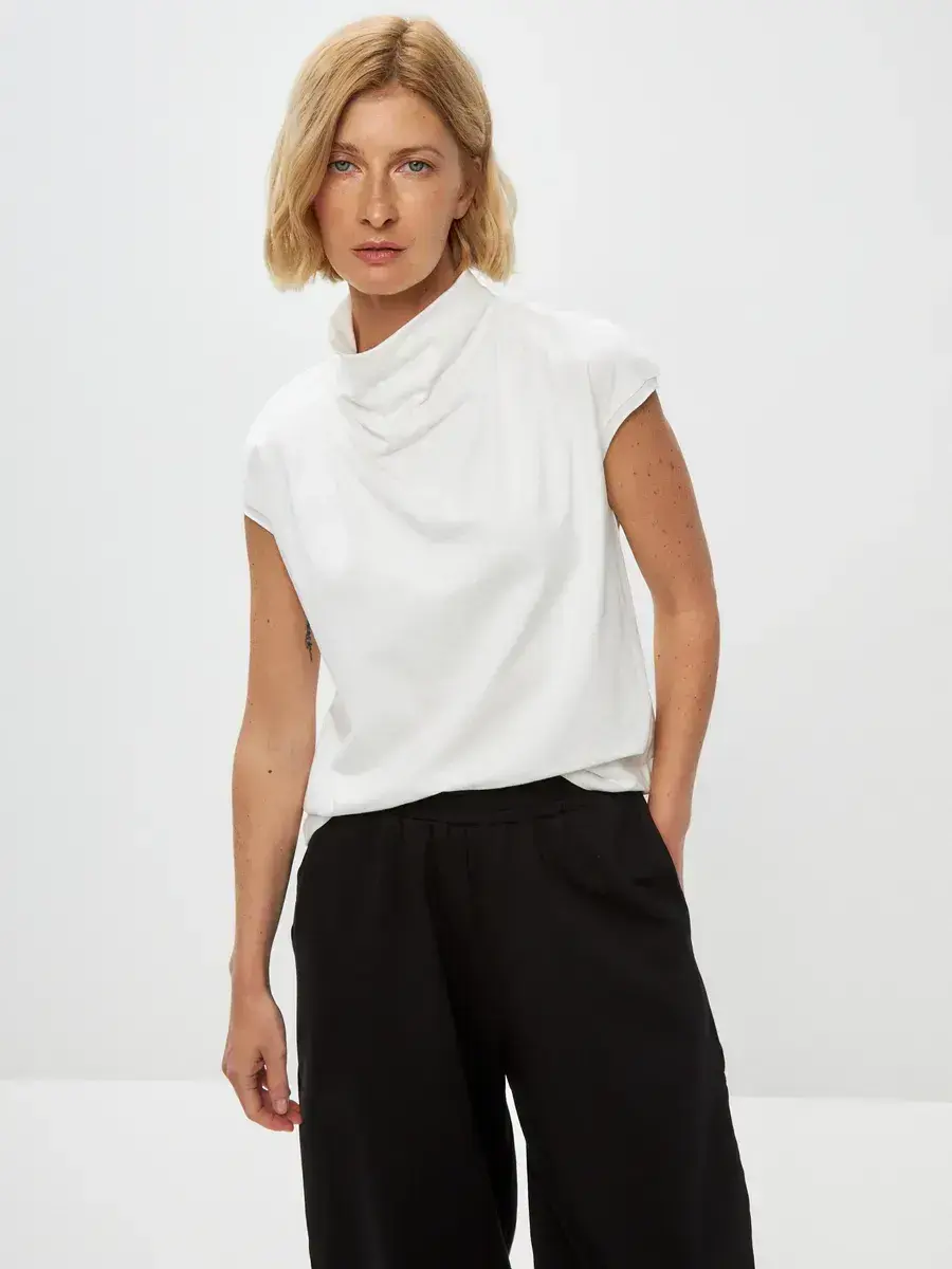 Футболка оверсайз из премиальной кулирной глади — современная интерпретация базовой модели с акцентом на комфорт и стиль. Свободный крой и мягкая пластичная ткань (95% хлопок, 5% эластан) обеспечивают идеальную посадку и приятные тактильные ощущения. Особенность дизайна — объемный драпированный ворот, создающий изысканный силуэт, и цельнокроеные короткие рукава с аккуратным подворотом. Модель легко сочетается как с повседневными джинсами и шортами, так и с более строгими брюками или юбками, добавляя образу непринужденной элегантности.