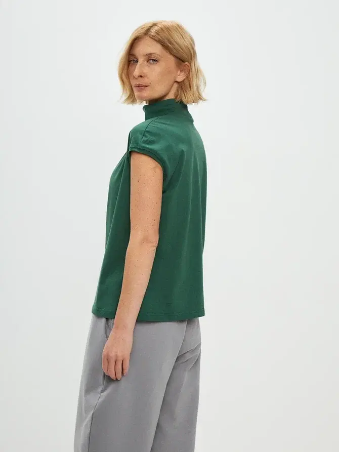 Футболка дизайнерская с цельнокроеным воротником изумруд