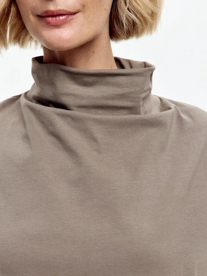 Футболка дизайнерская с цельнокроеным воротником серо-бежевый