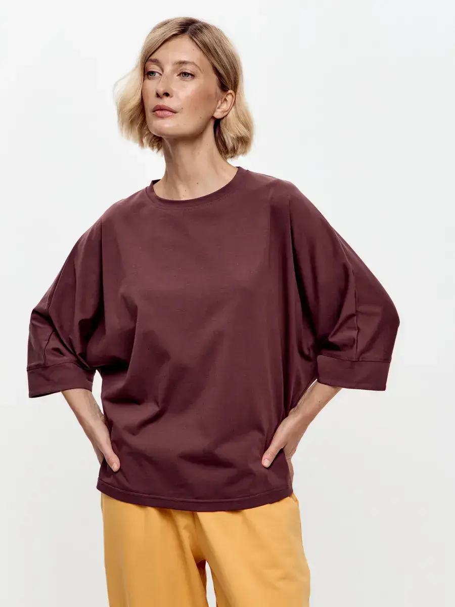 Футболка оверсайз большие размеры летучая мышь шоколад
