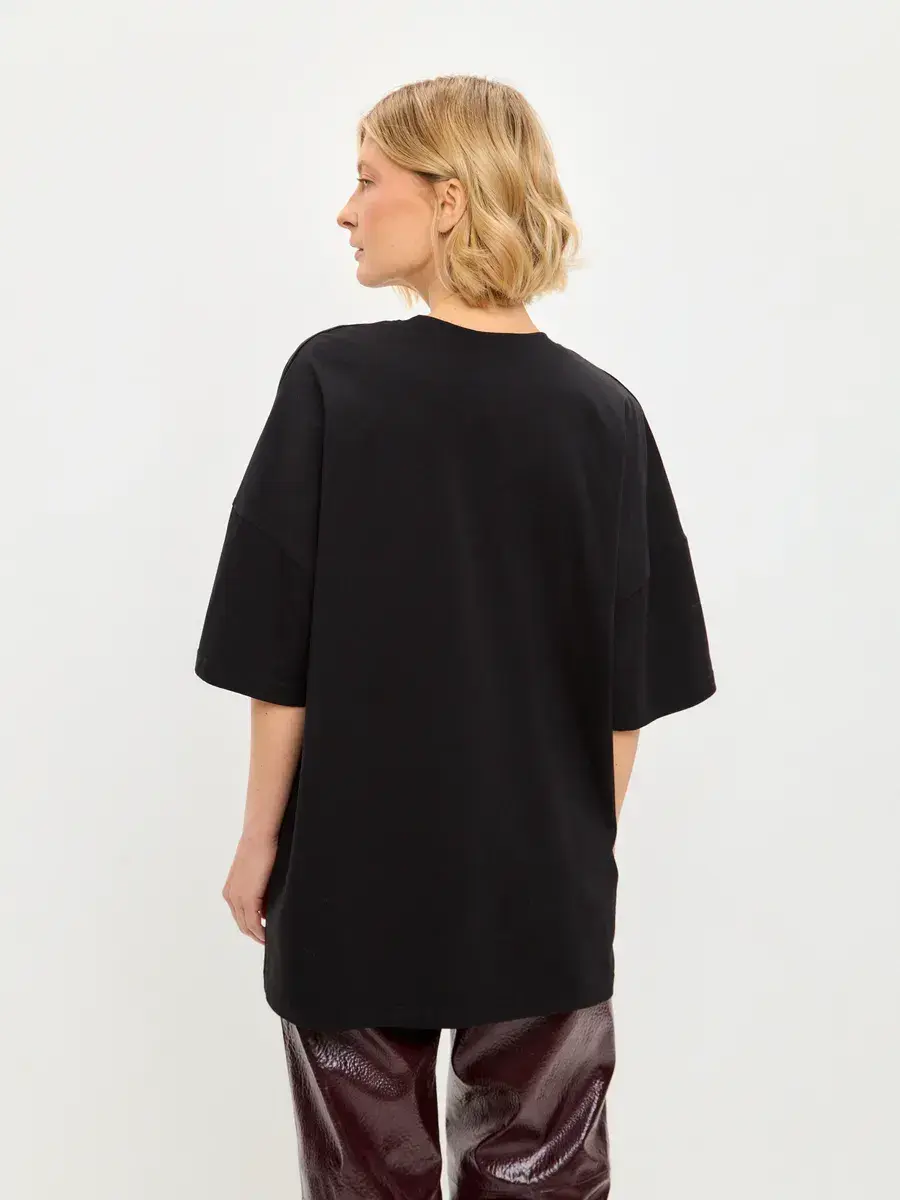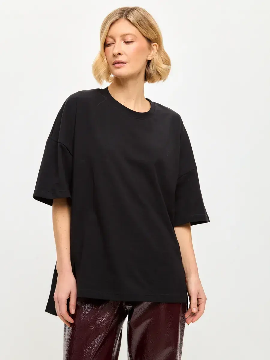 Футболка оверсайз удлиненная с разрезами по бокам черный