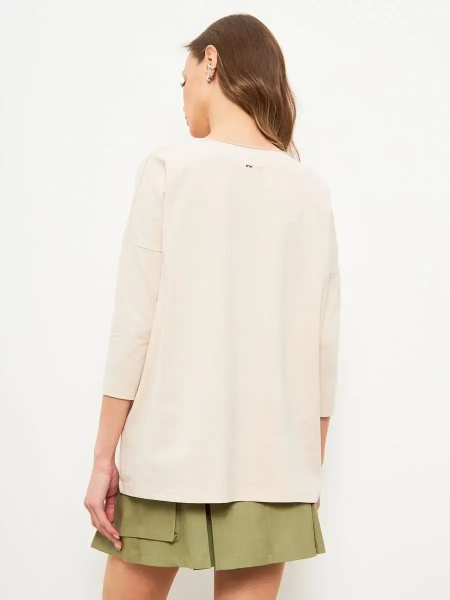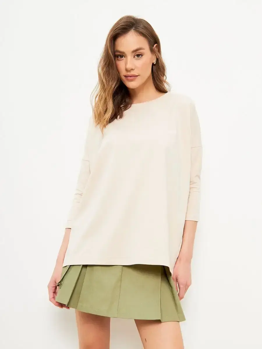 Лонгслив оверсайз с рукавом 3/4 бежевый