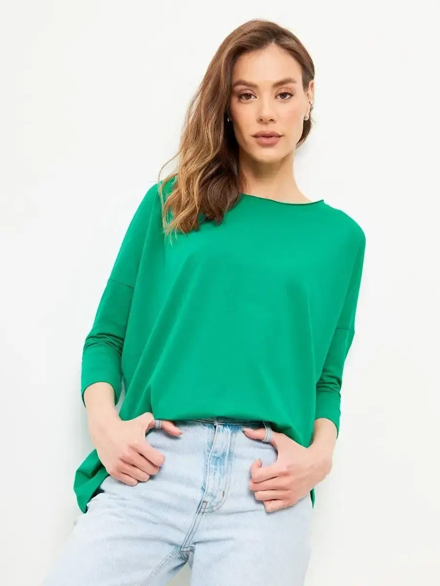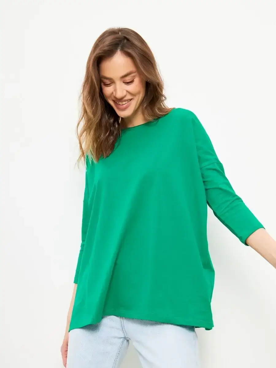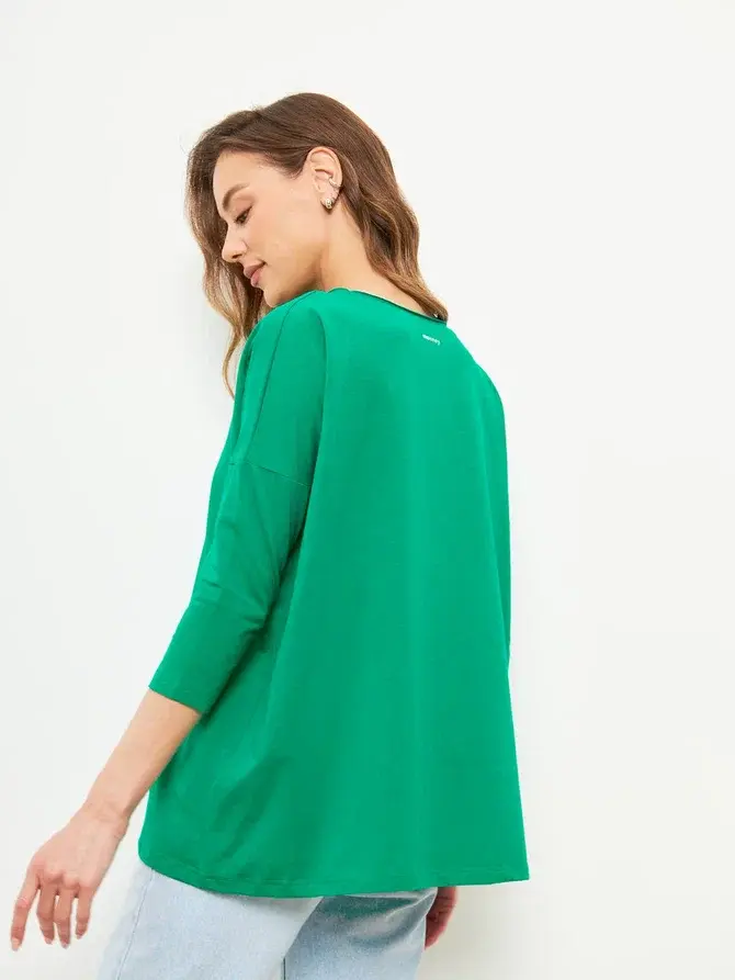 Лонгслив оверсайз с рукавом 3/4 зеленый