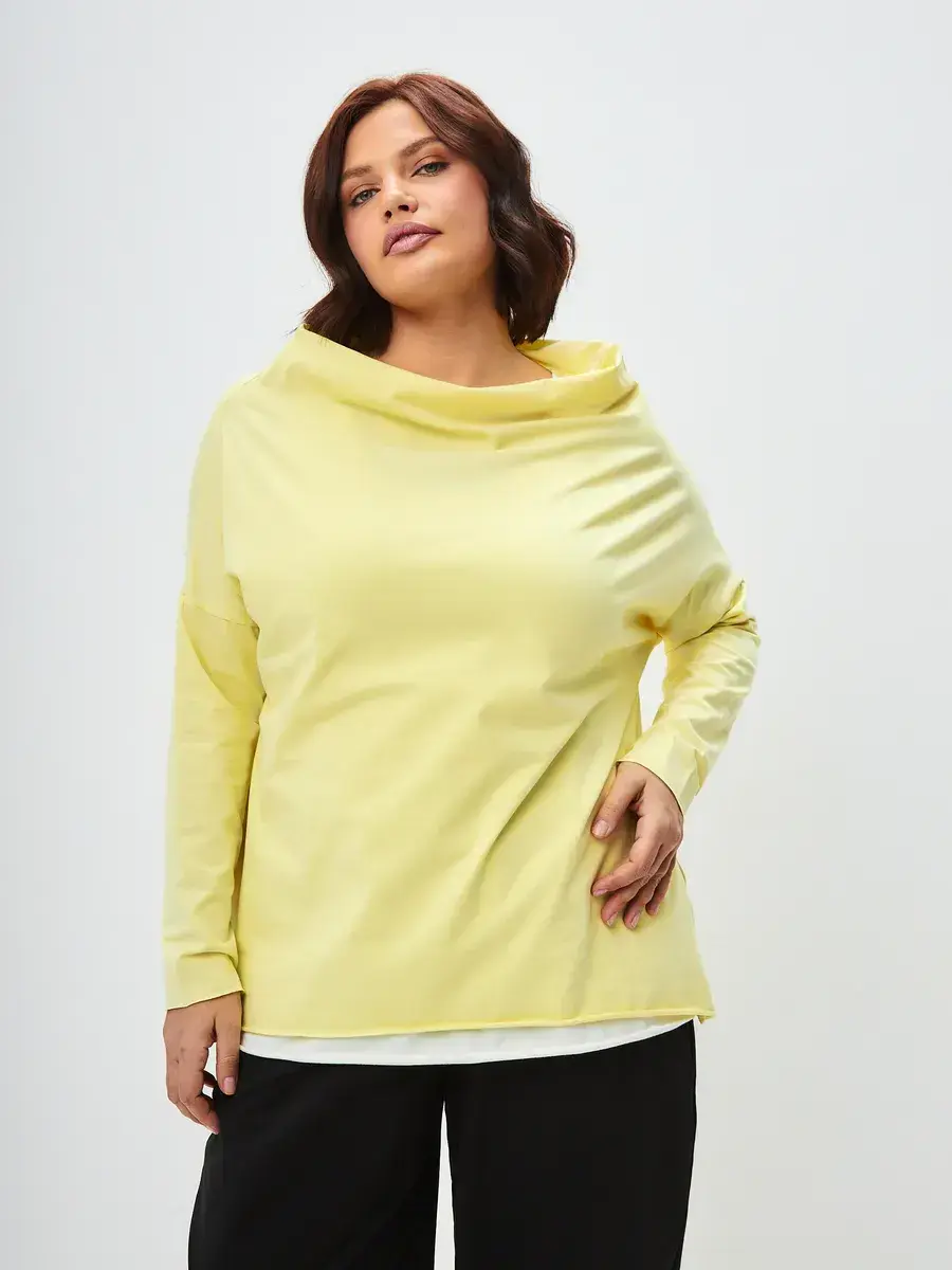 Лонгслив оверсайз с вырезом лодочка сливочно-масляный