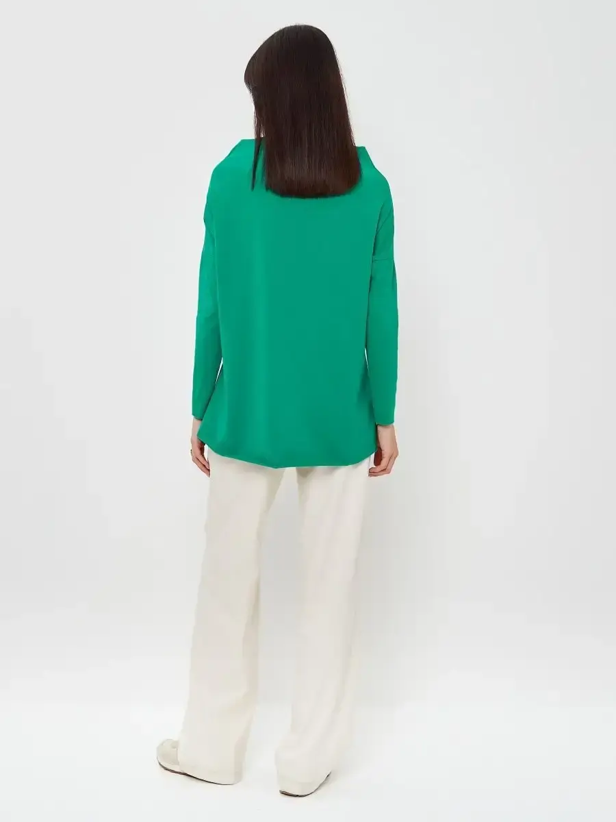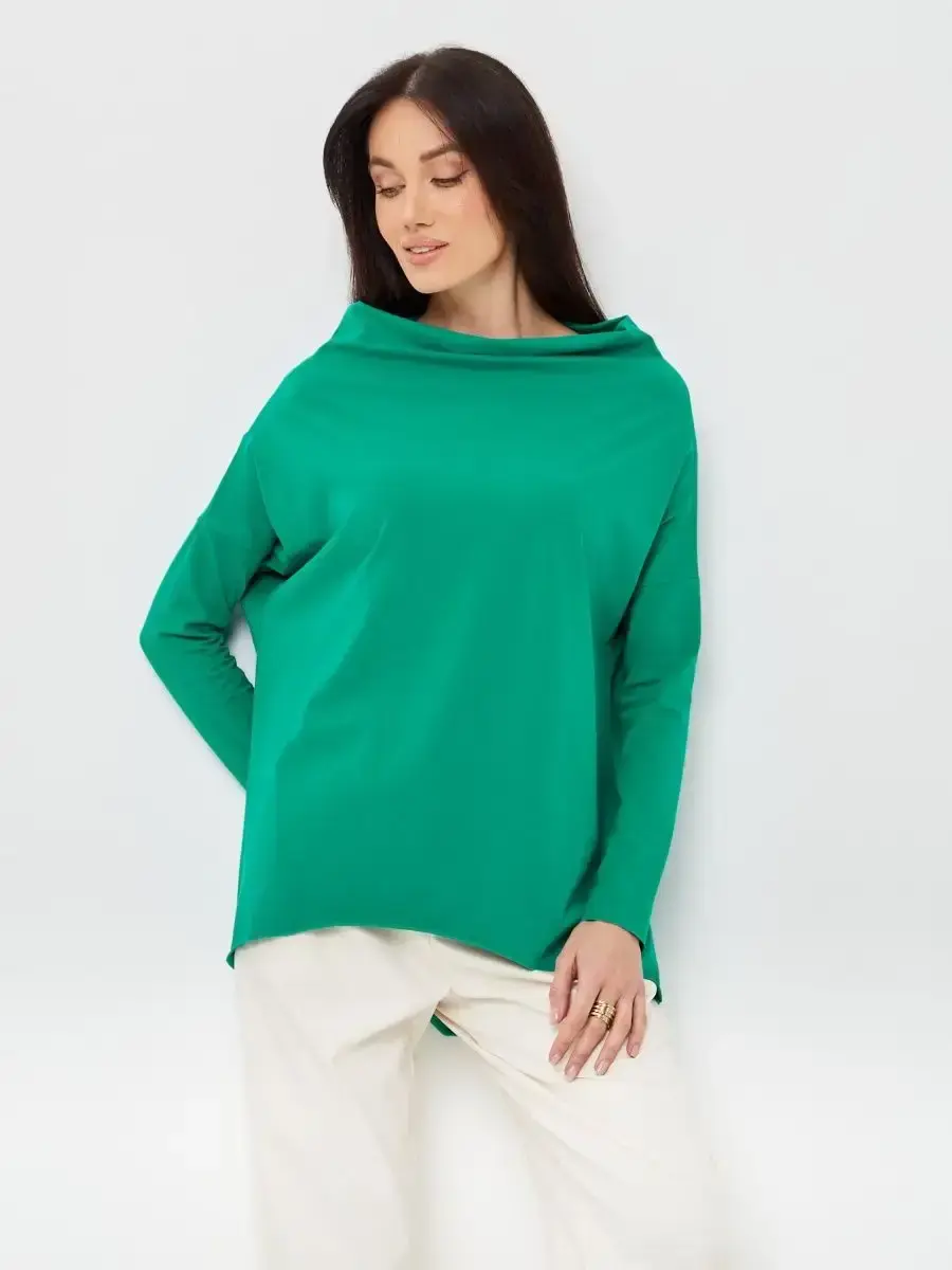 Лонгслив оверсайз с вырезом лодочка зеленый