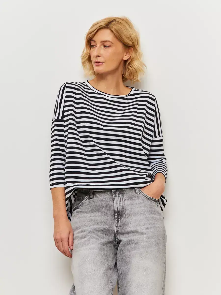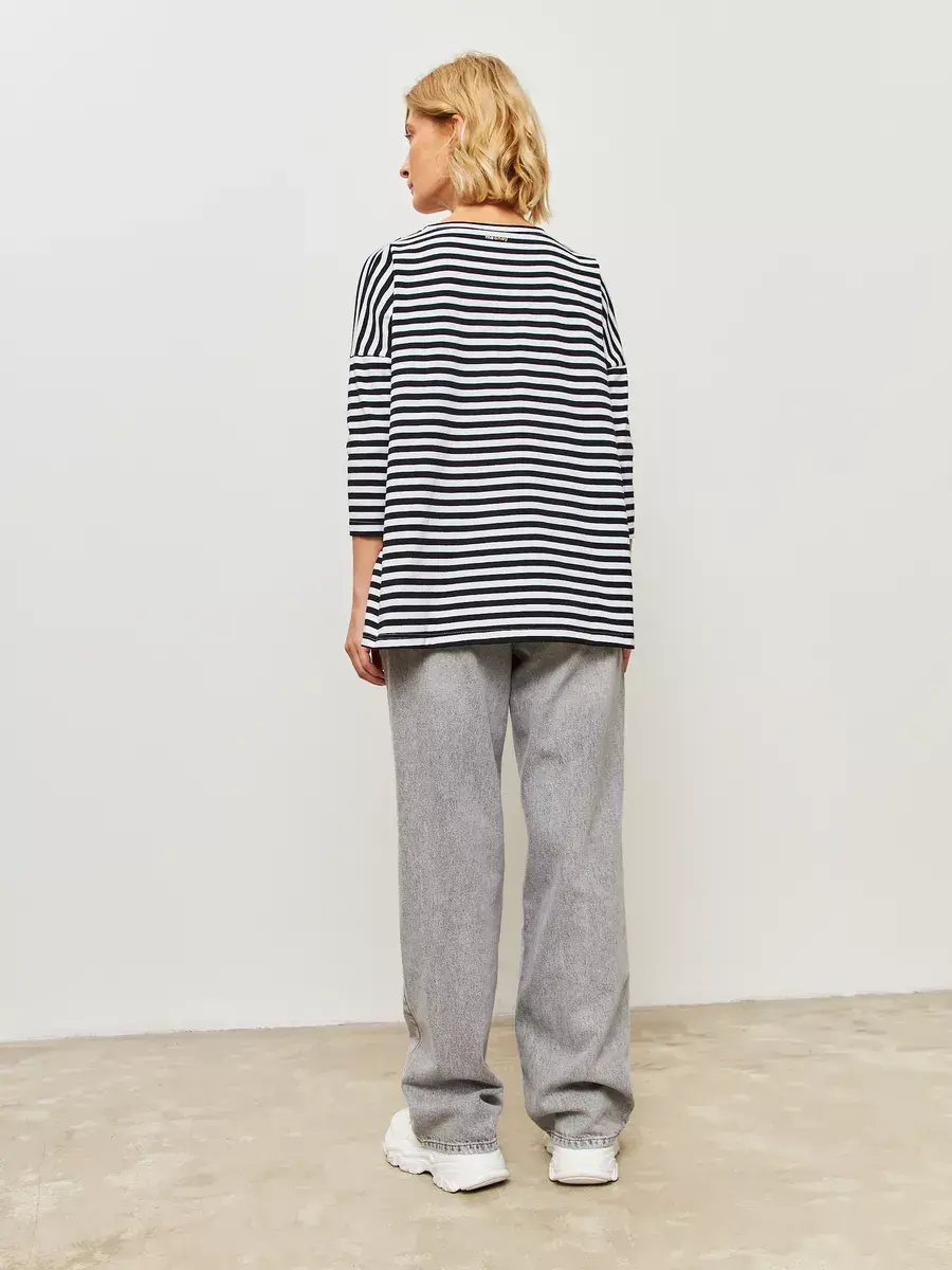 Лонгслив тельняшка оверсайз с рукавом 3/4 тельняшка