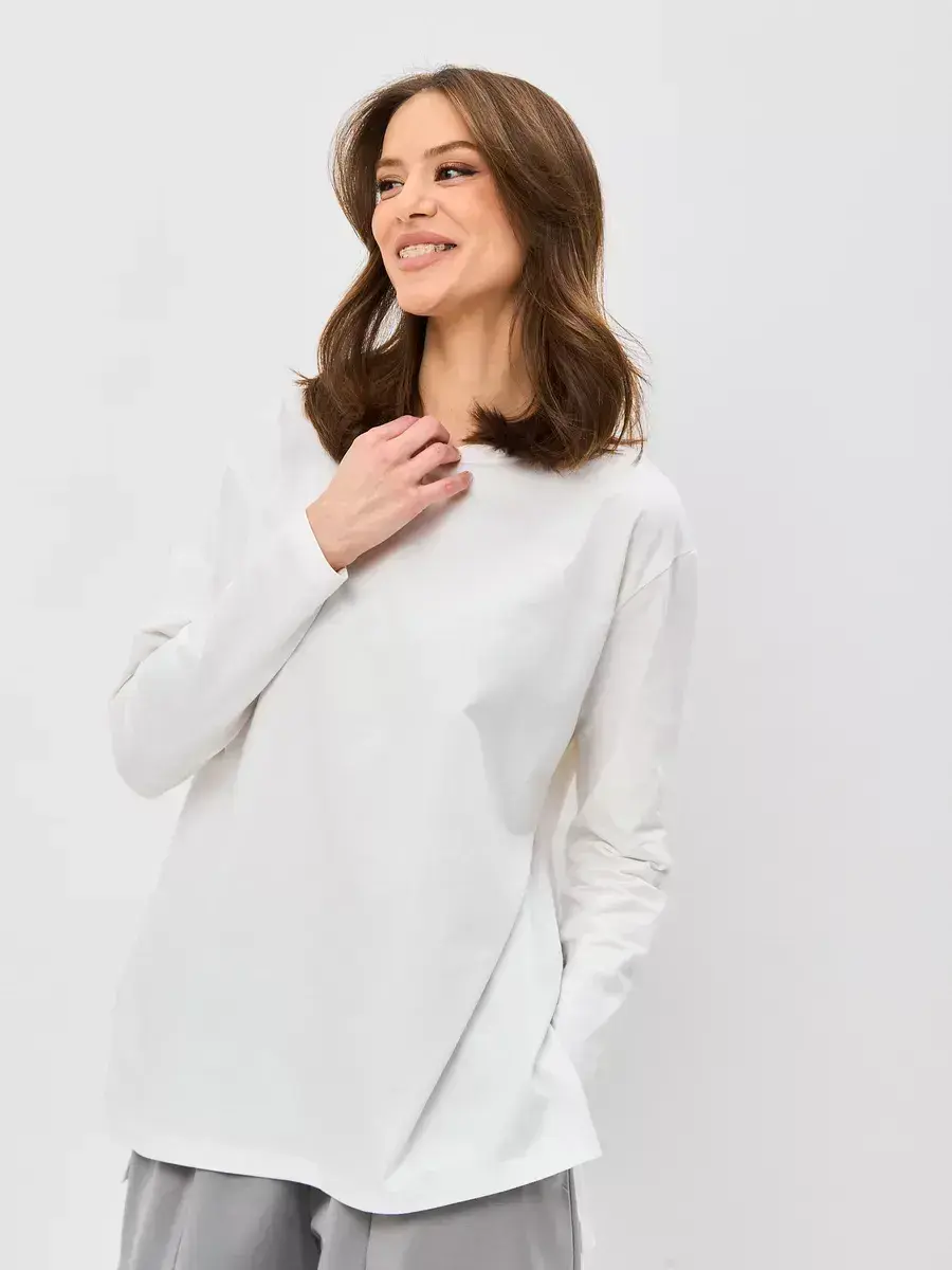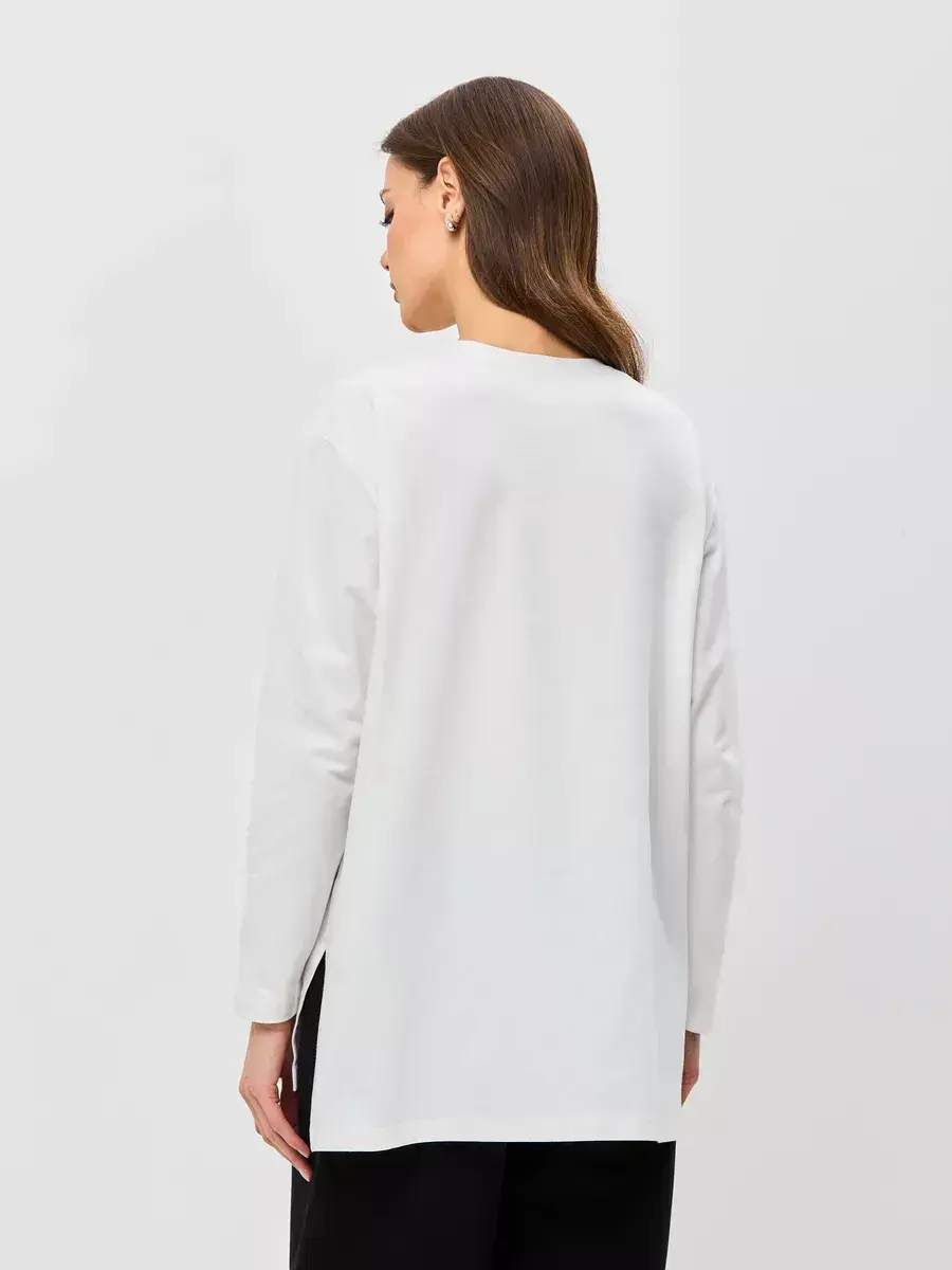 Лонгслив удлиненный оверсайз с разрезами экрю