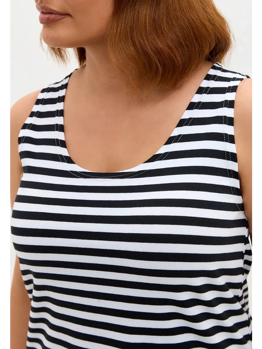 Майка базовая под пиджак удлиненная оверсайз тельняшка/чёрный