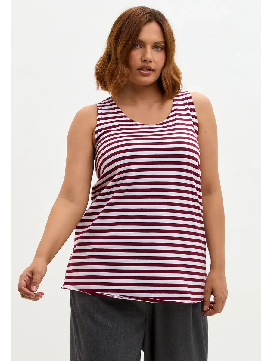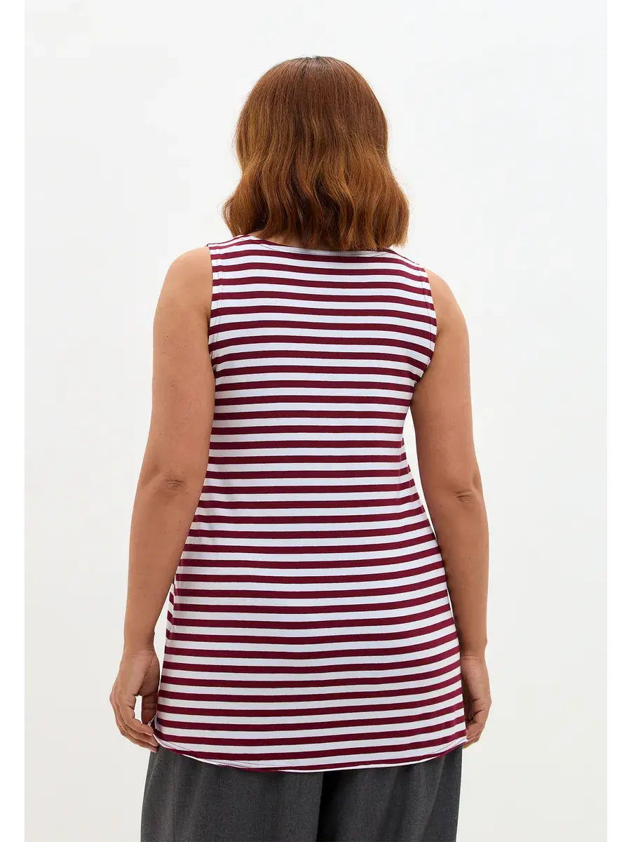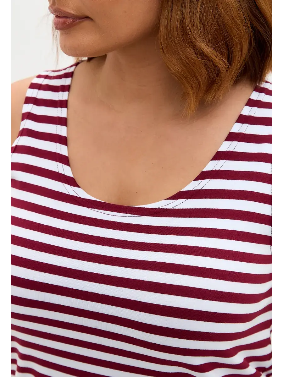 Майка базовая под пиджак удлиненная оверсайз тельняшка/винный