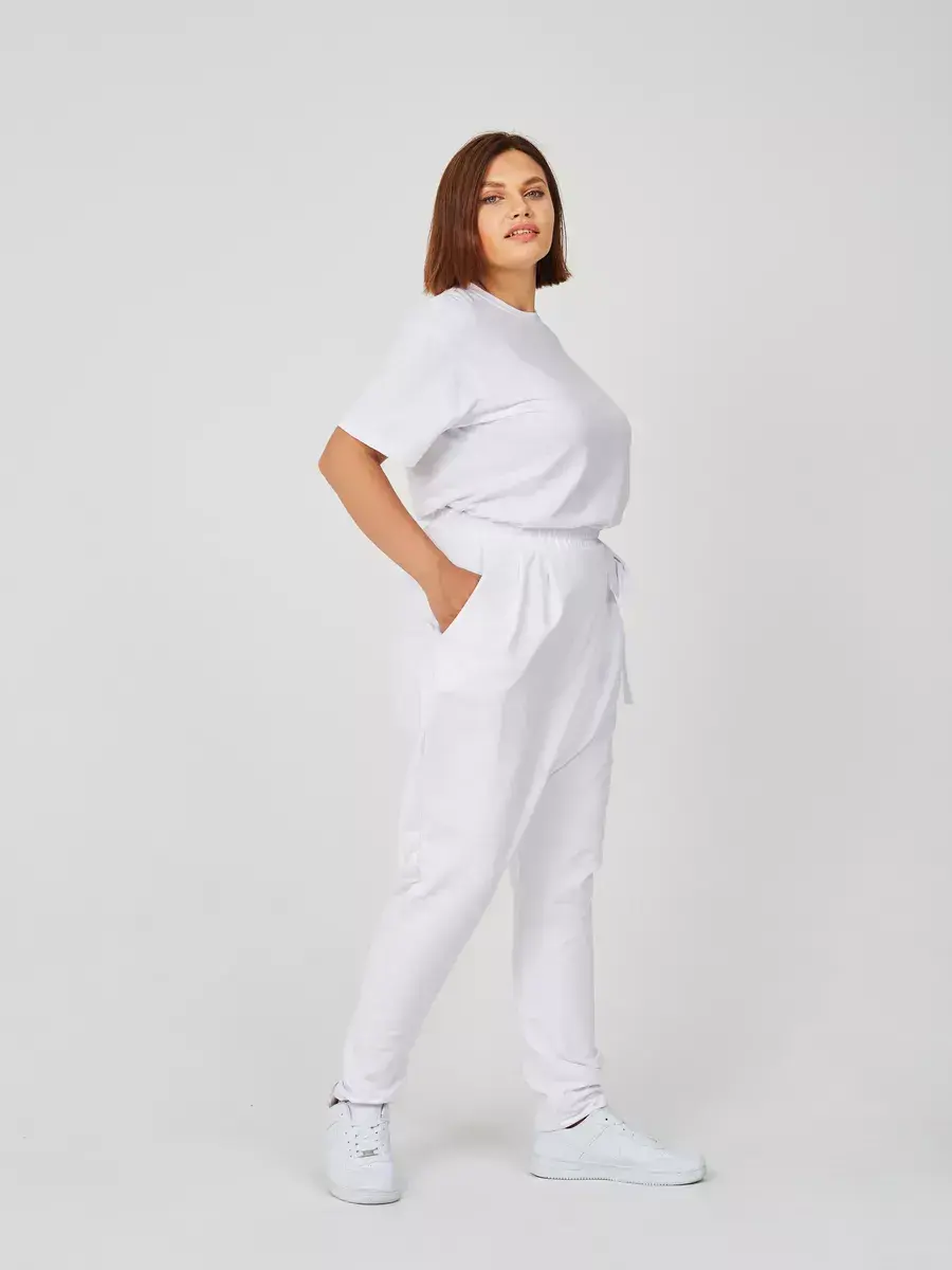 Штаны оверсайз на завязках с запахом большие размеры белый