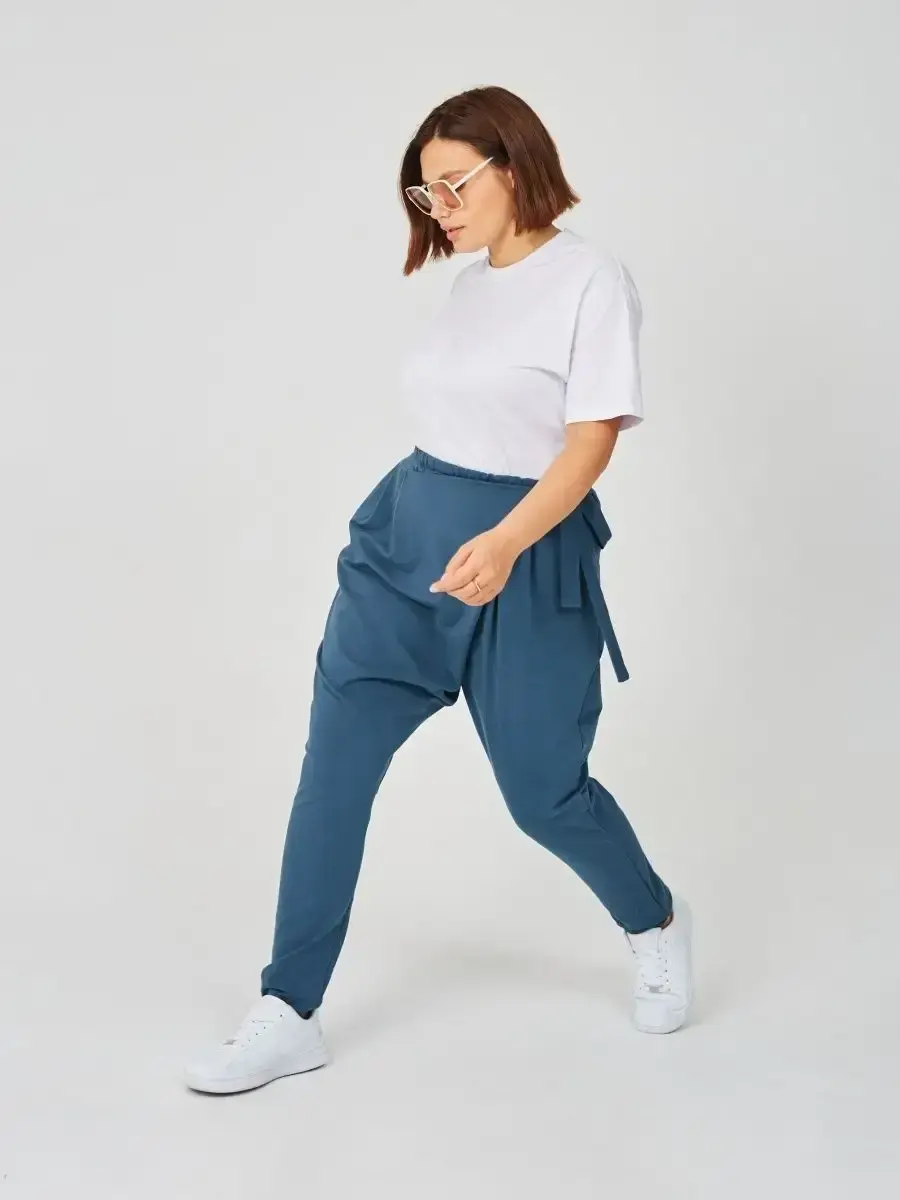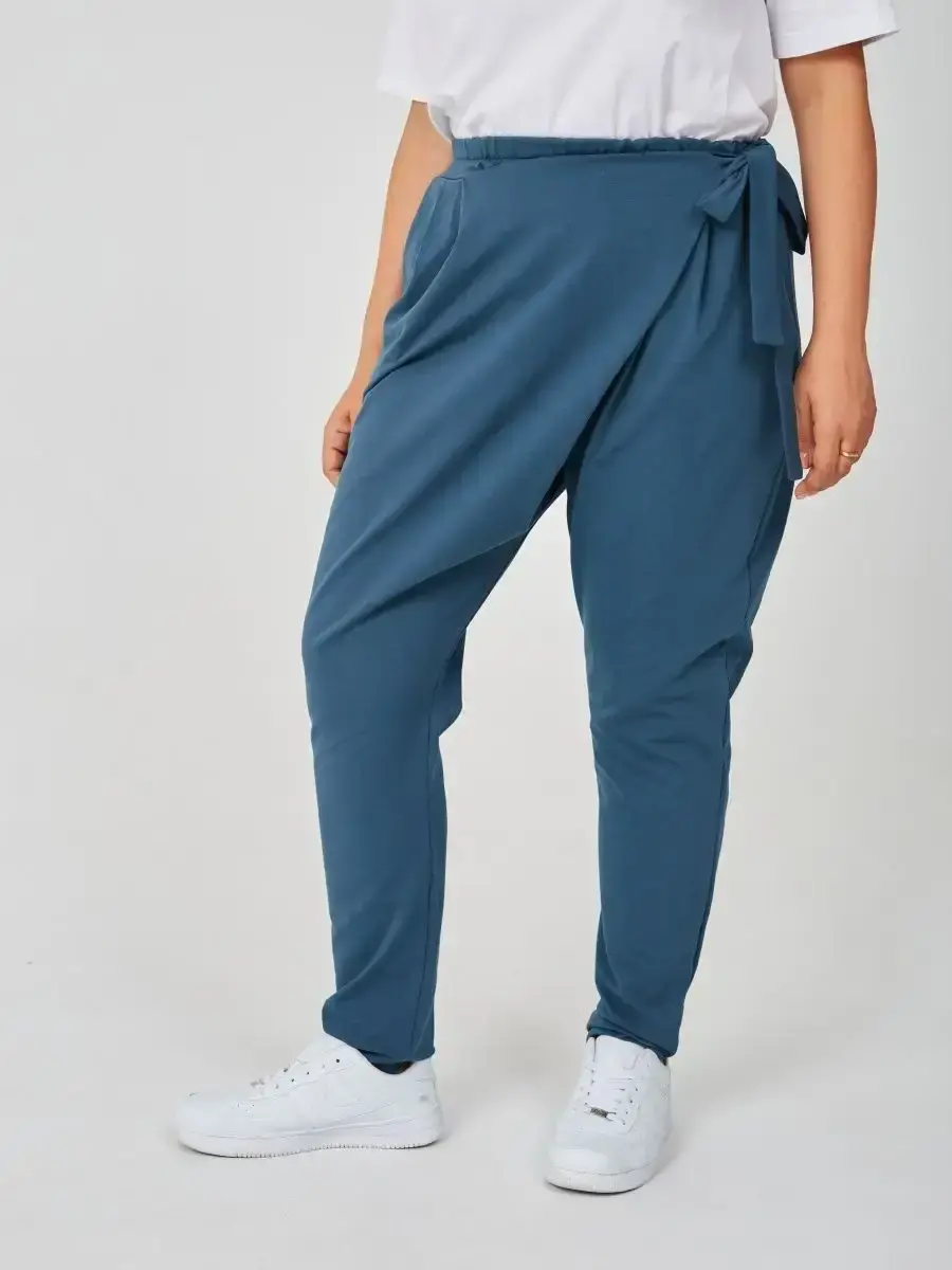 Штаны оверсайз на завязках с запахом большие размеры изумрудный