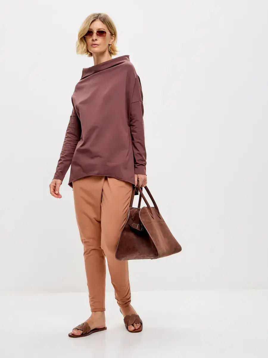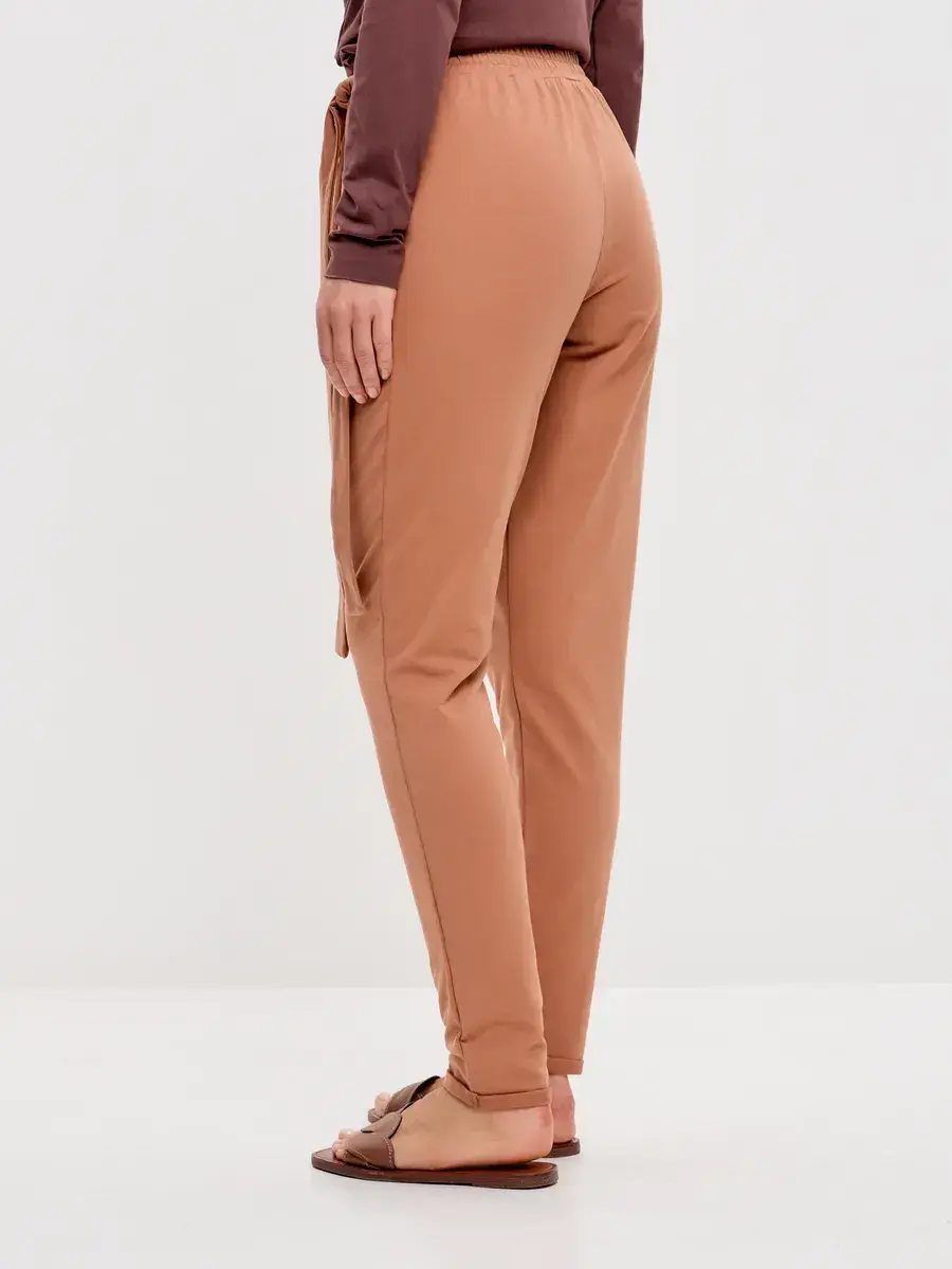 Штаны оверсайз на завязках с запахом большие размеры песочный