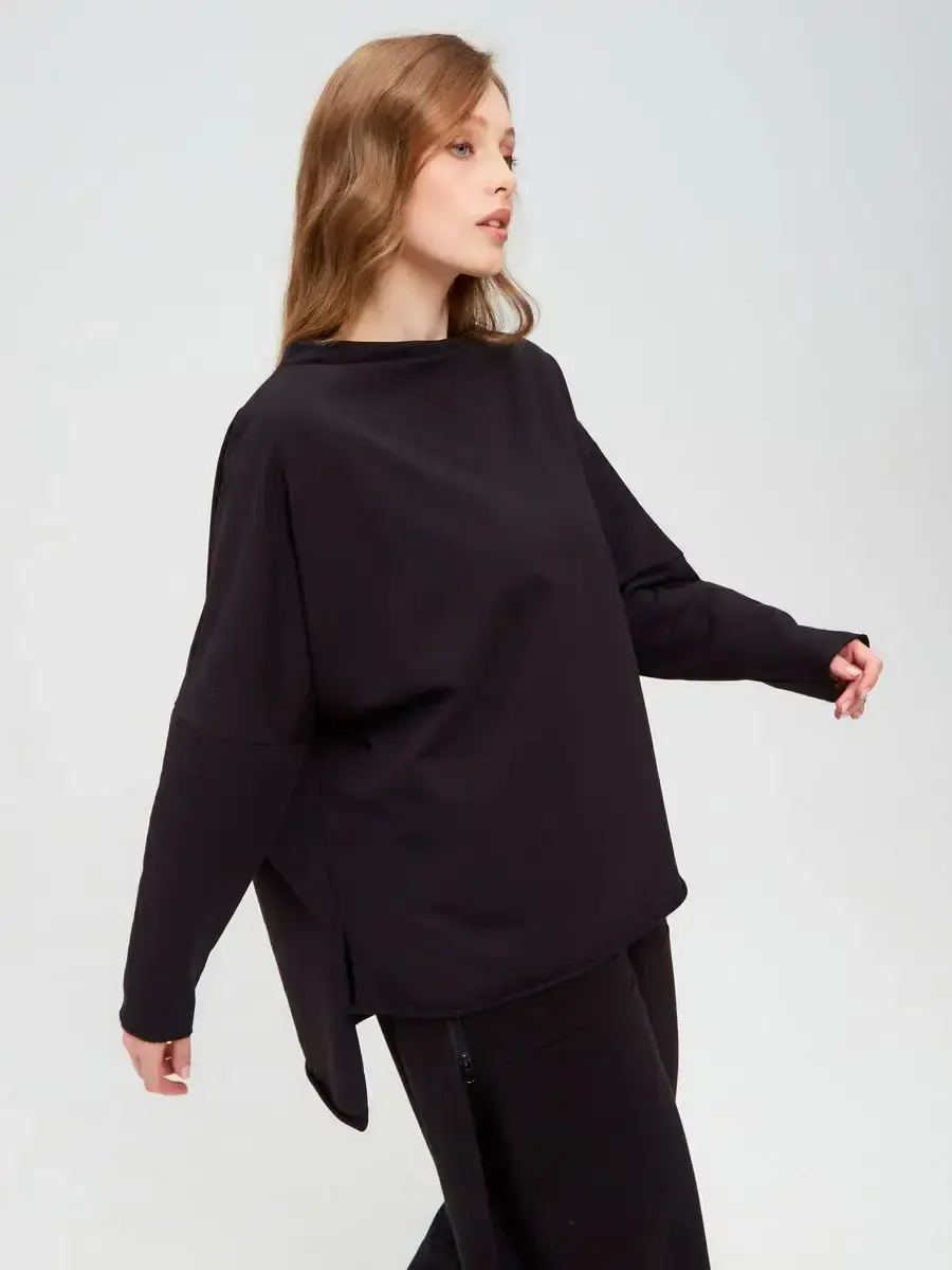 Свитшот оверсайз из футера двунитки — универсальная модель в стиле casual, сочетающая комфорт и современный минимализм. Выполнен из премиального трикотажа (95% хлопок, 5% эластан), мягкого и слегка эластичного, что обеспечивает свободу движений и приятные тактильные ощущения.